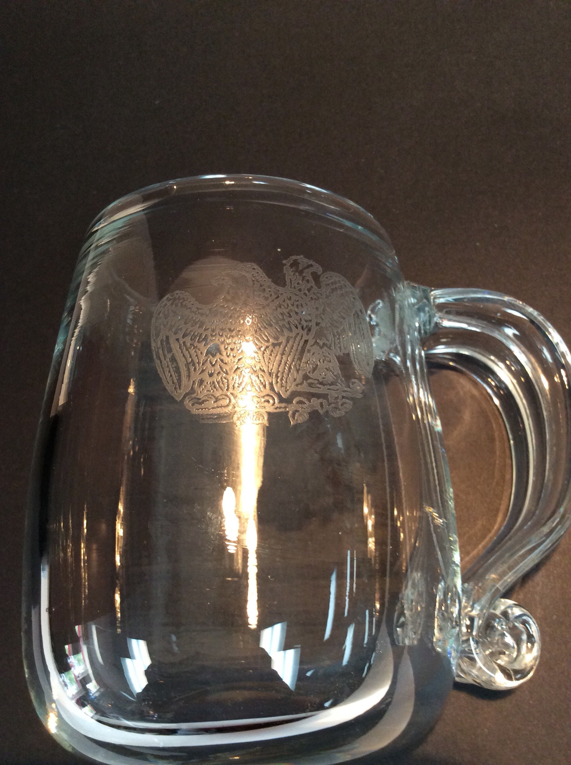 There are two eagles etched into the side. This is one of very few pieces of Blenko that are etched. The pontil has been polished.