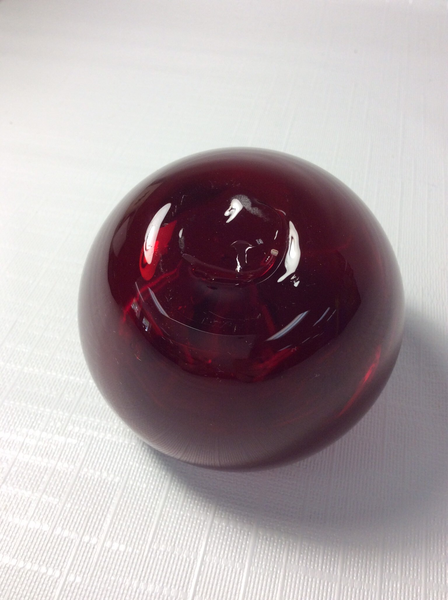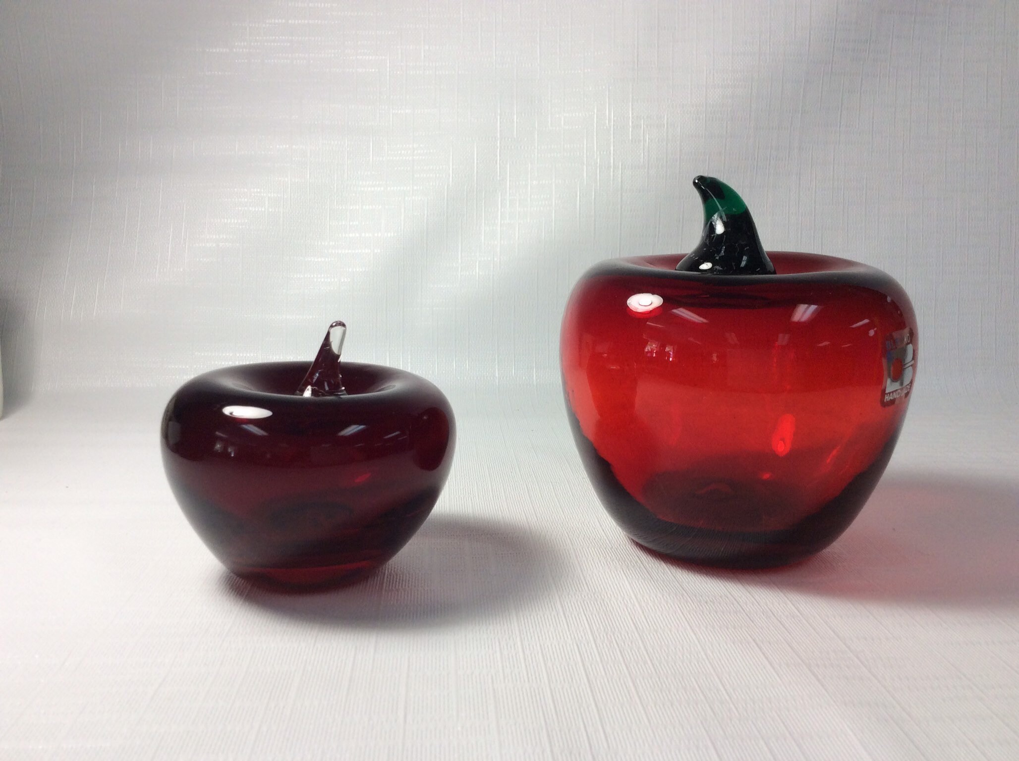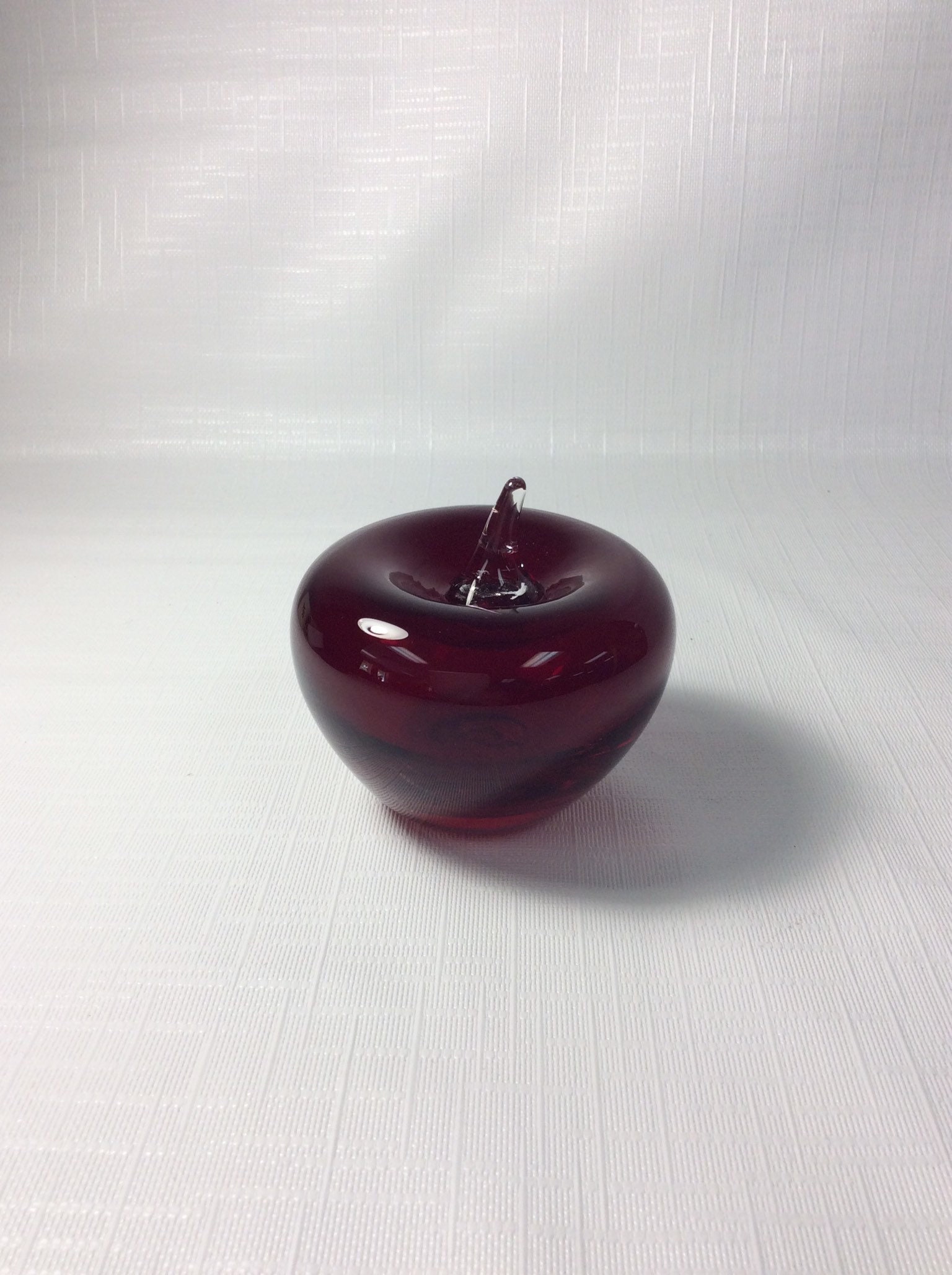 Blenko hand blown glass crab apple, ruby with crystal stem.